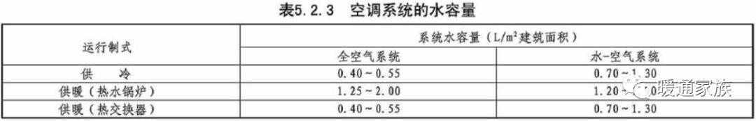 三、空调系统的水容量可近似按表5.2.3数据进行估算
