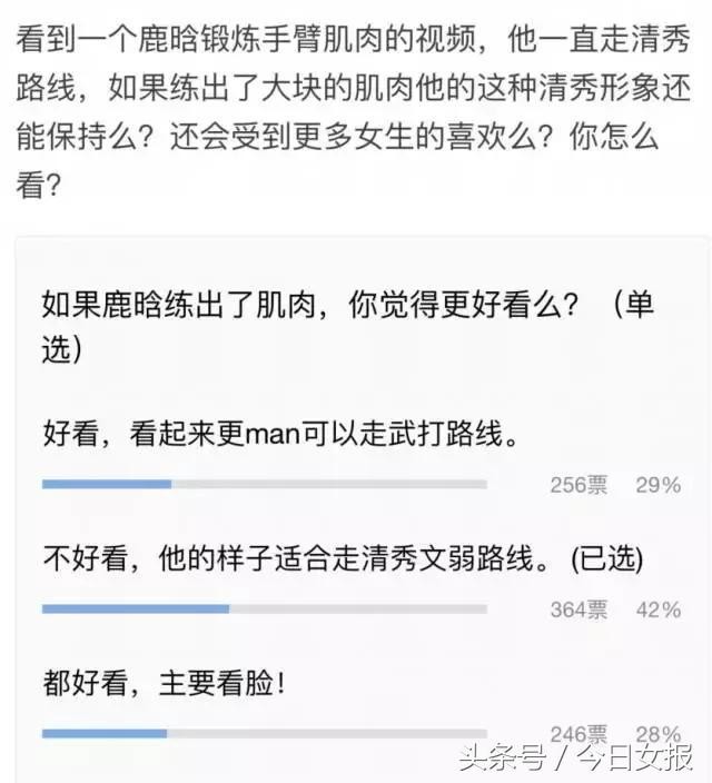 要知道,当时有网友就鹿晗秀肌肉的视频专门做了一个调查,具体内容看下面: