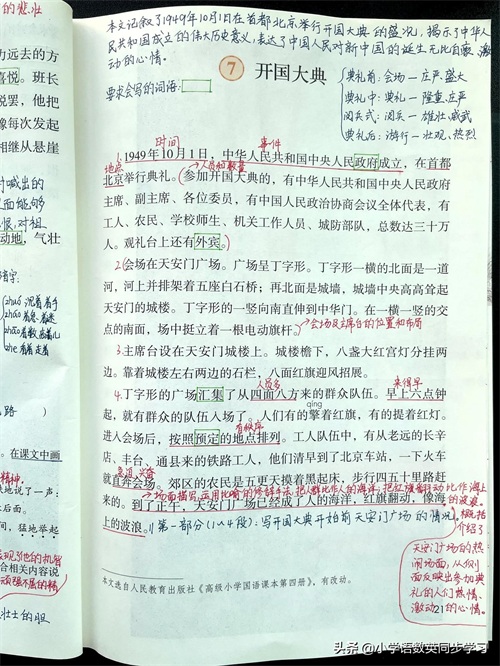 小学语文六年级上册第7课《开国大典》超详细笔记、学习指导