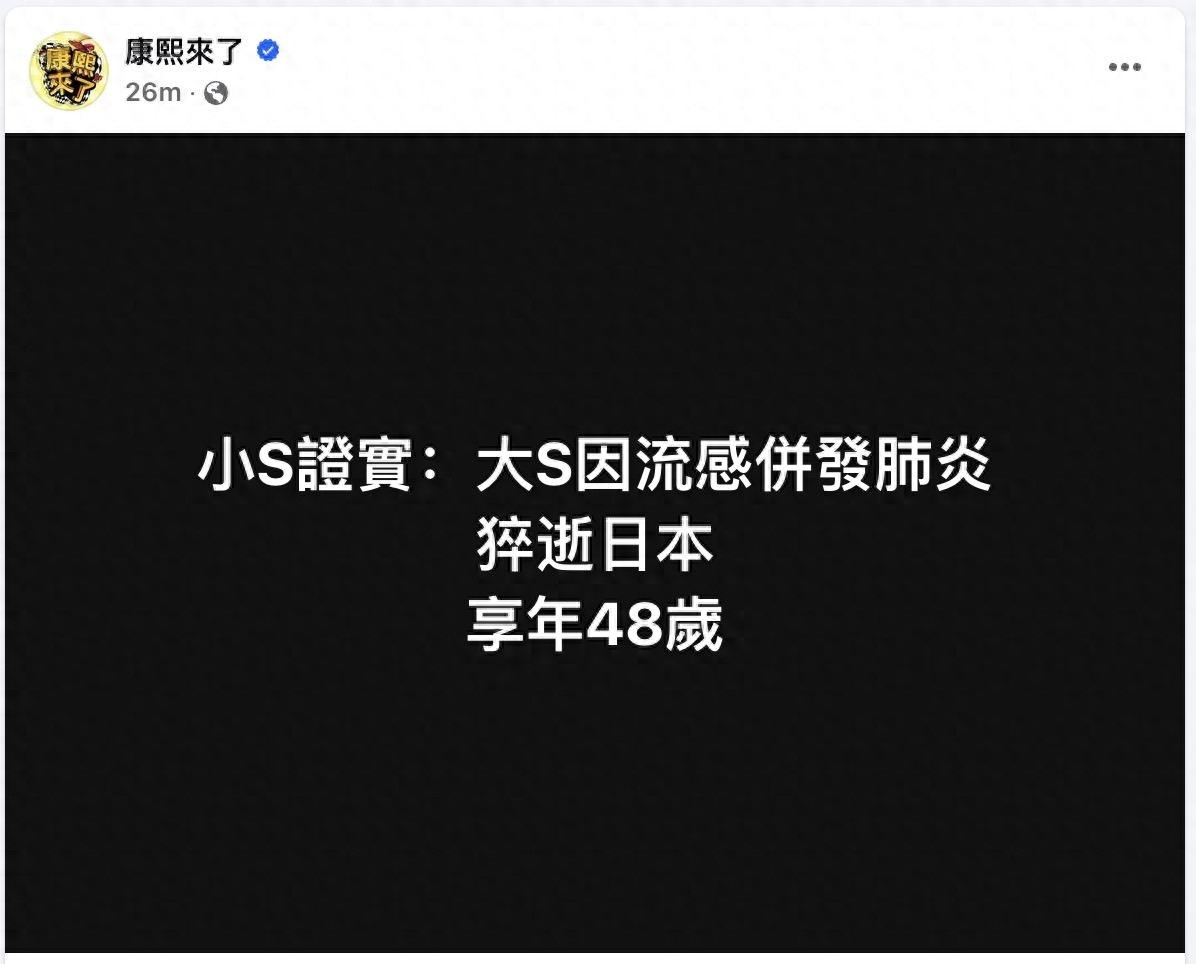 《康熙来了》节目组发文证实大S猝逝!上个月底曾公开露面