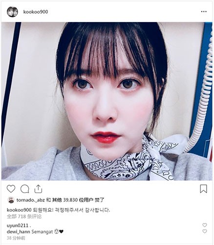 9月20日上午,韩国女演员具惠善在个人社交平台发文晒照,表示已经出院。