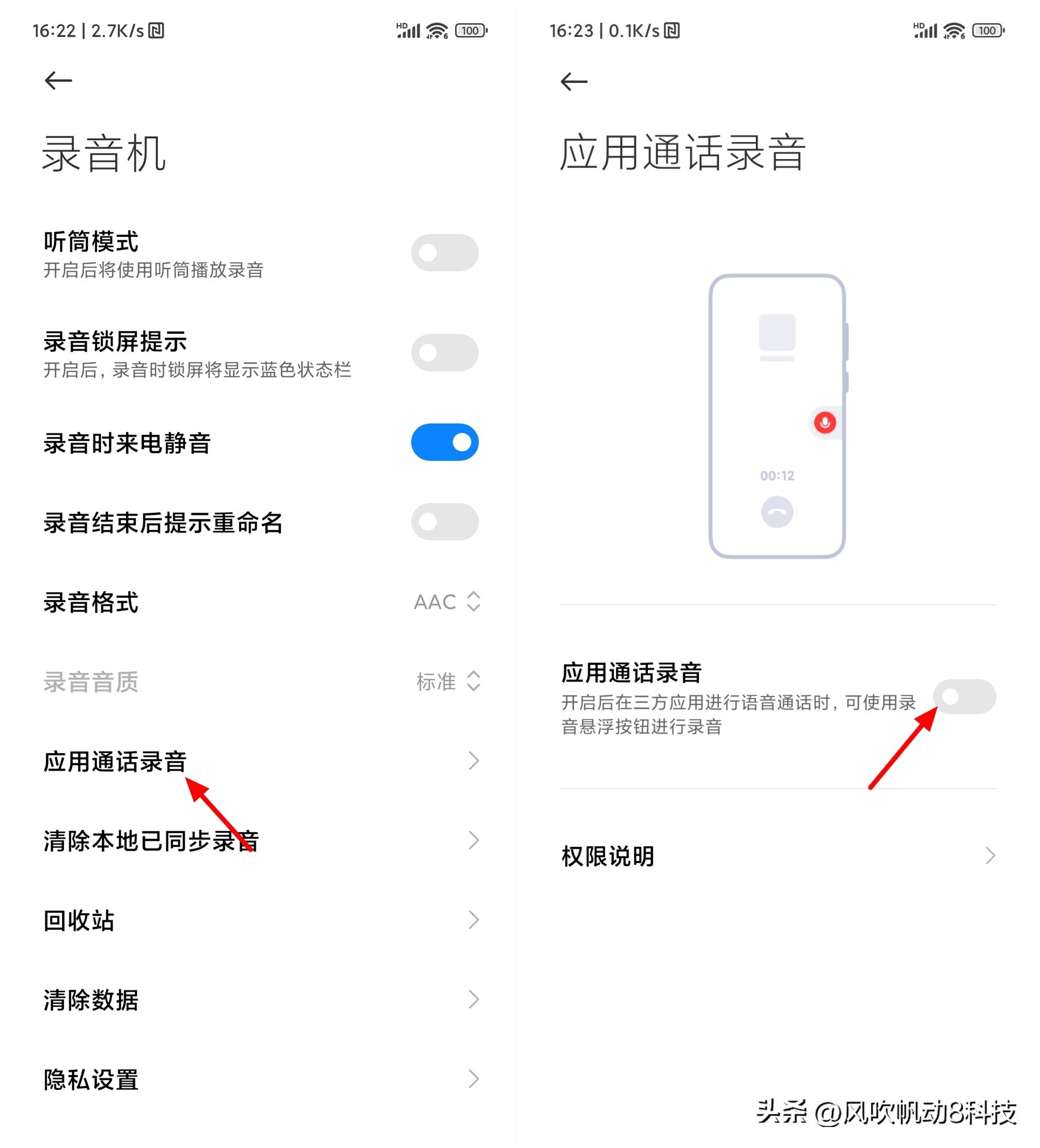 转换界面后,就可以看到应用通话录音功能,选择打开应用通话录音。进入后在应用通话录音界面,打开应用通话录音功能右侧的开关。