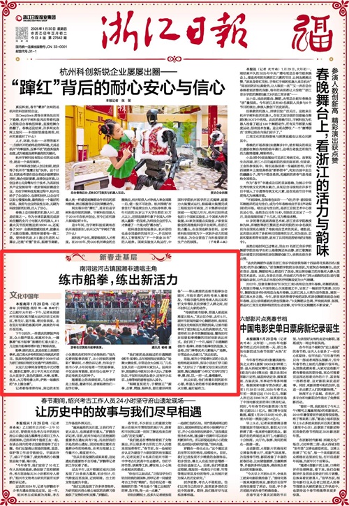 记者看得津津有味,旁边的本地小伙费英杰和同伴讨论得热烈:“很久没看到船拳表演了,比小时候的更精彩!”攀谈间,小费告诉记者,他毕业于练市小学,6年间每周一节的船拳课,不仅是体育锻炼,更在他心底种下了亲近传统文化的种子。