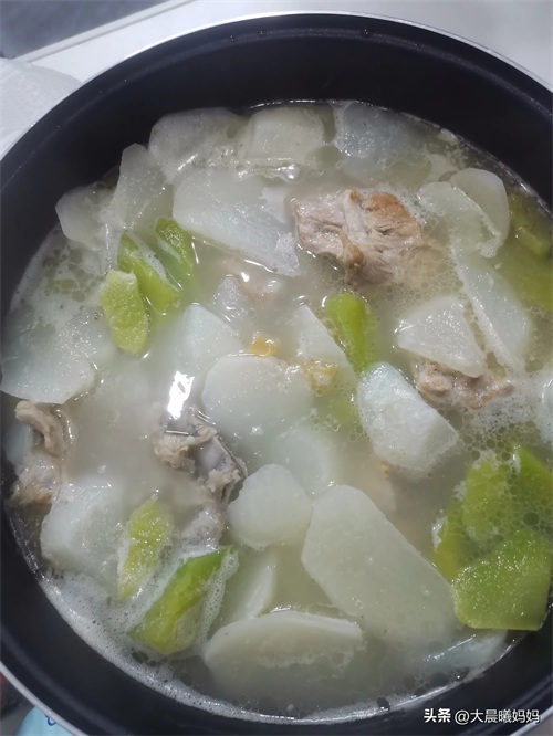 这是老公弄的,排骨炖白萝卜加莴笋。老公太小气了,弄的排骨都不够我们三个人吃。