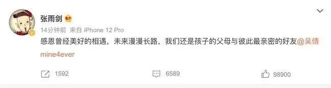 唯一一次张雨剑承认吴倩,并艾特她是在离婚,也是可笑。