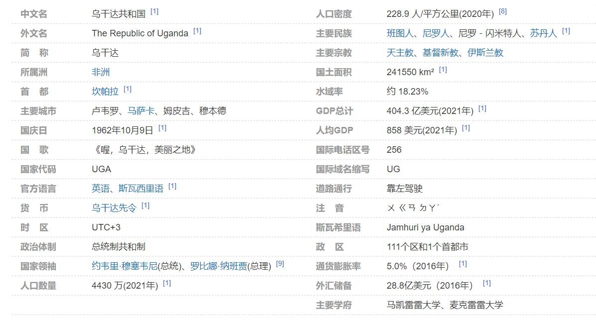 由于乌干达自然条件较好,气候适宜,又富含丰富的矿产、水利、渔业、森林等资源,并具备发展旅游业的绝佳条件,被称为“非洲明珠”。然而,乌经济发展却很落后,是世界最不发达国家之一。