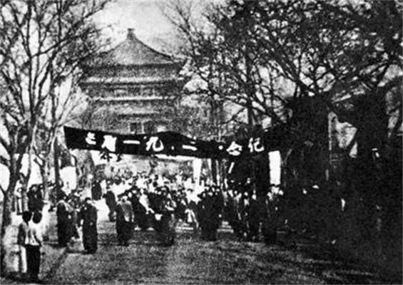 1935年的12月9日,数千名爱国青年,举行了抗日救国示威游行,掀起全国抗日救国新高潮。