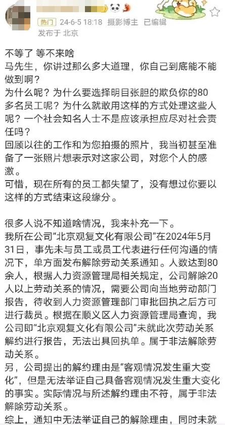 一个个博客账号冒了出来,发布者自称就是被马未都解雇的员工。他们痛斥马未都的做法,声讨马未都欠薪裁员的行为,为自己争取应有的权利。马未都却对此毫无回应,任由舆论的浪潮将它淹没。