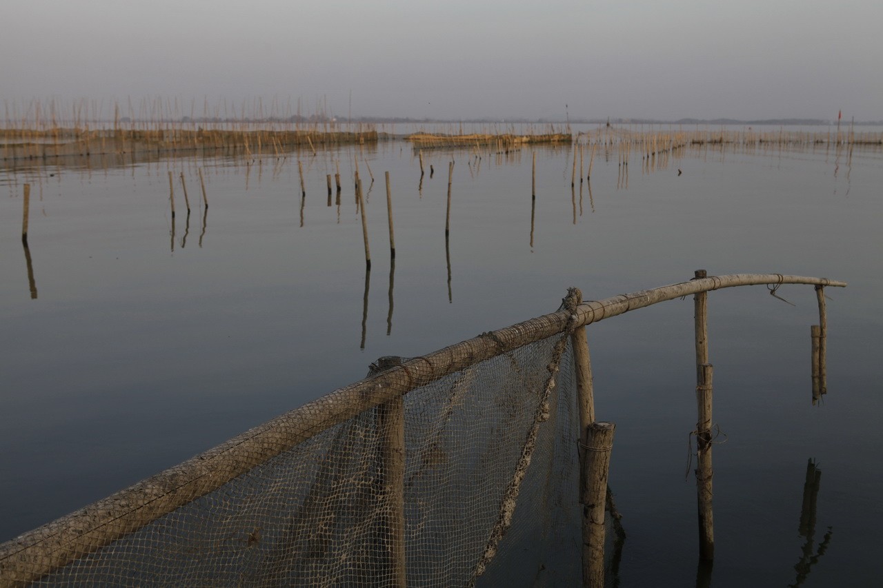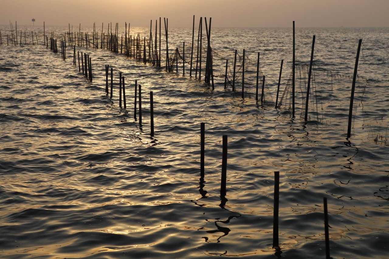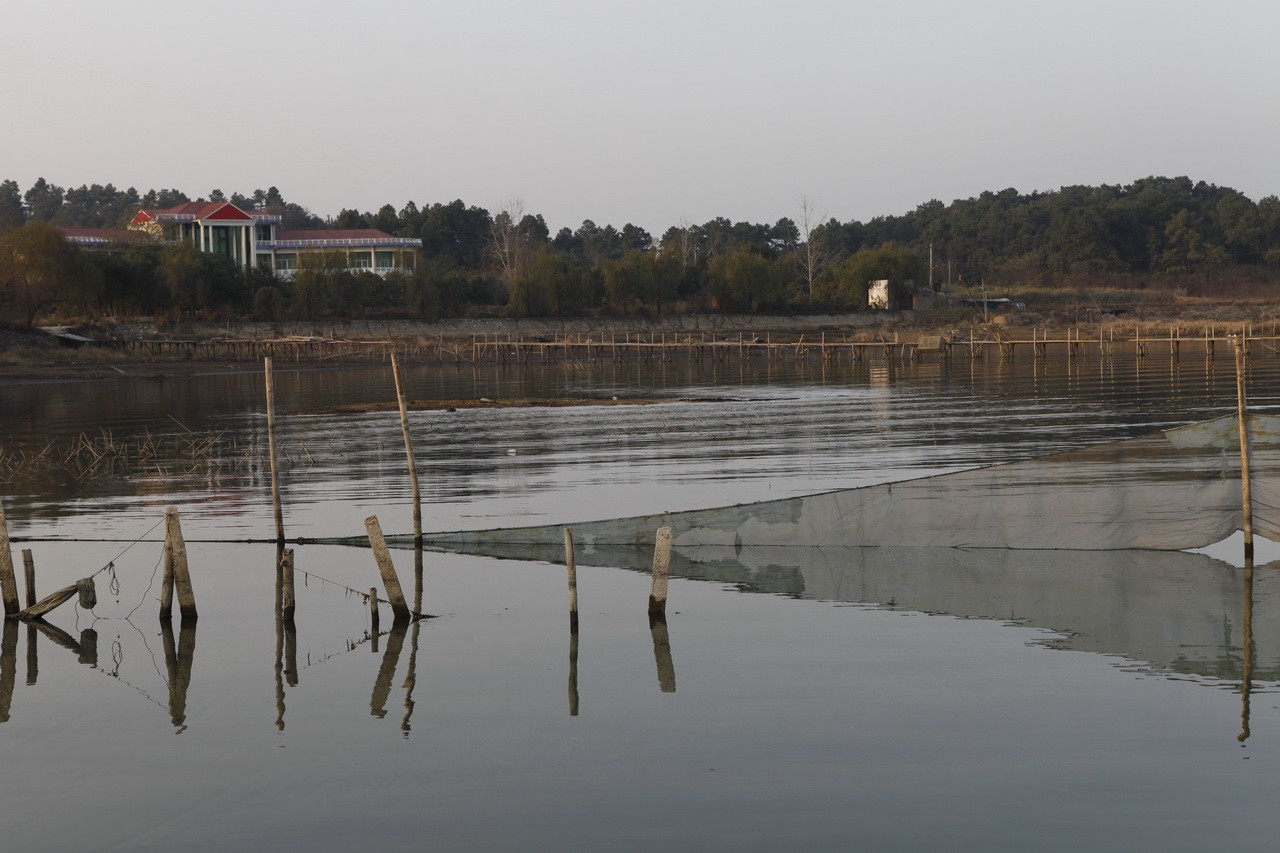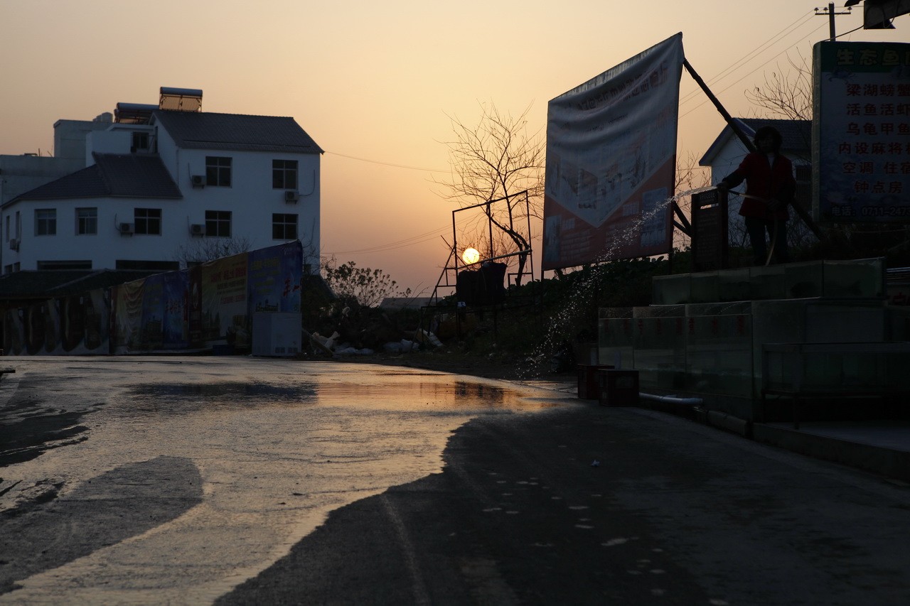 12月9日早晨,迎着朝霞拍摄捕鱼人。