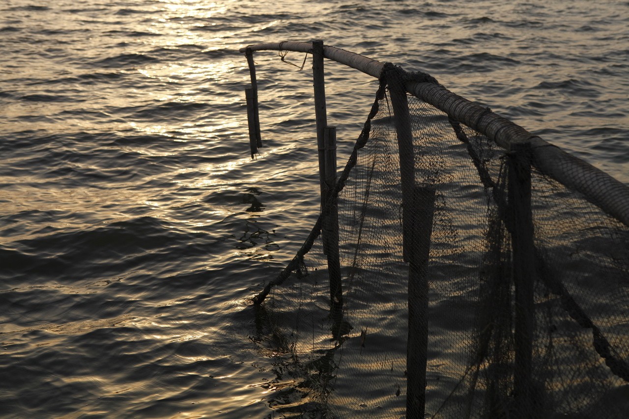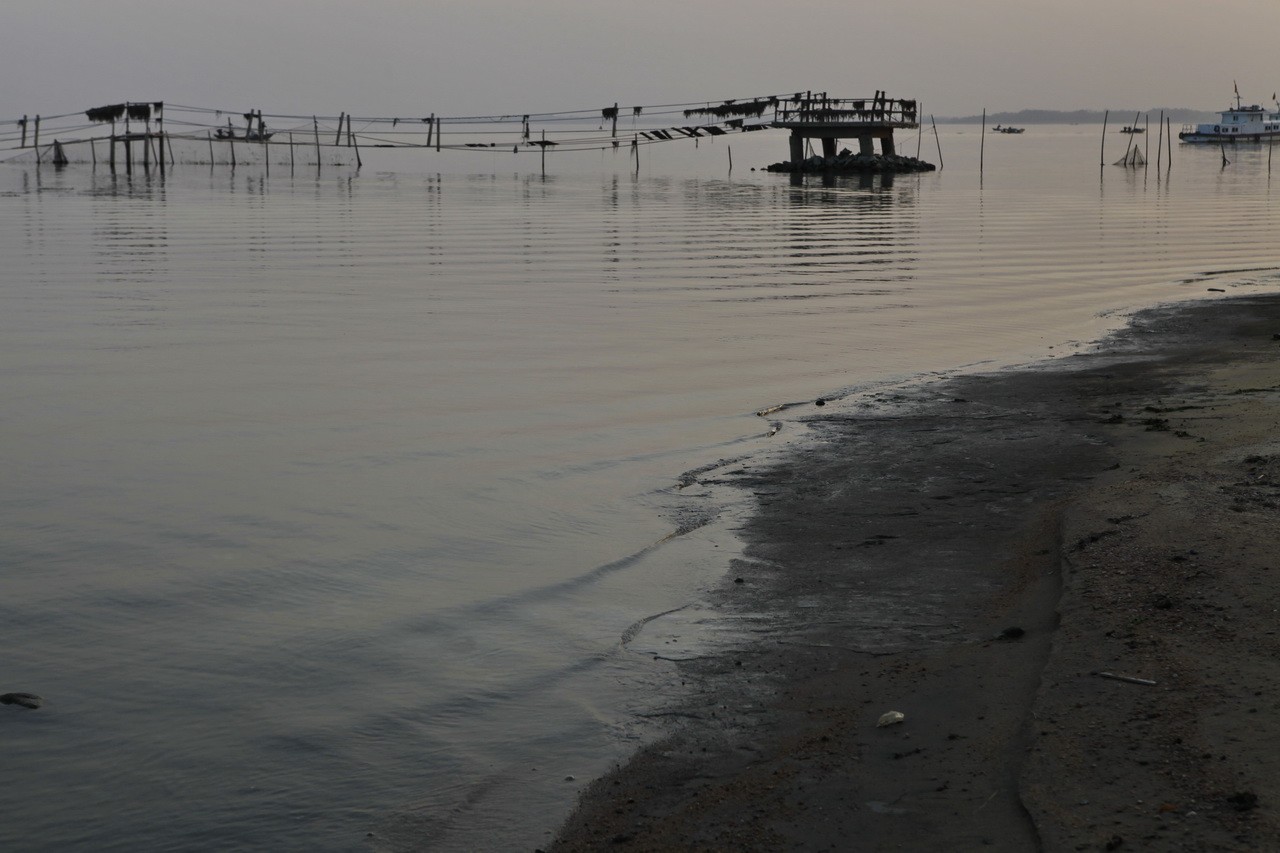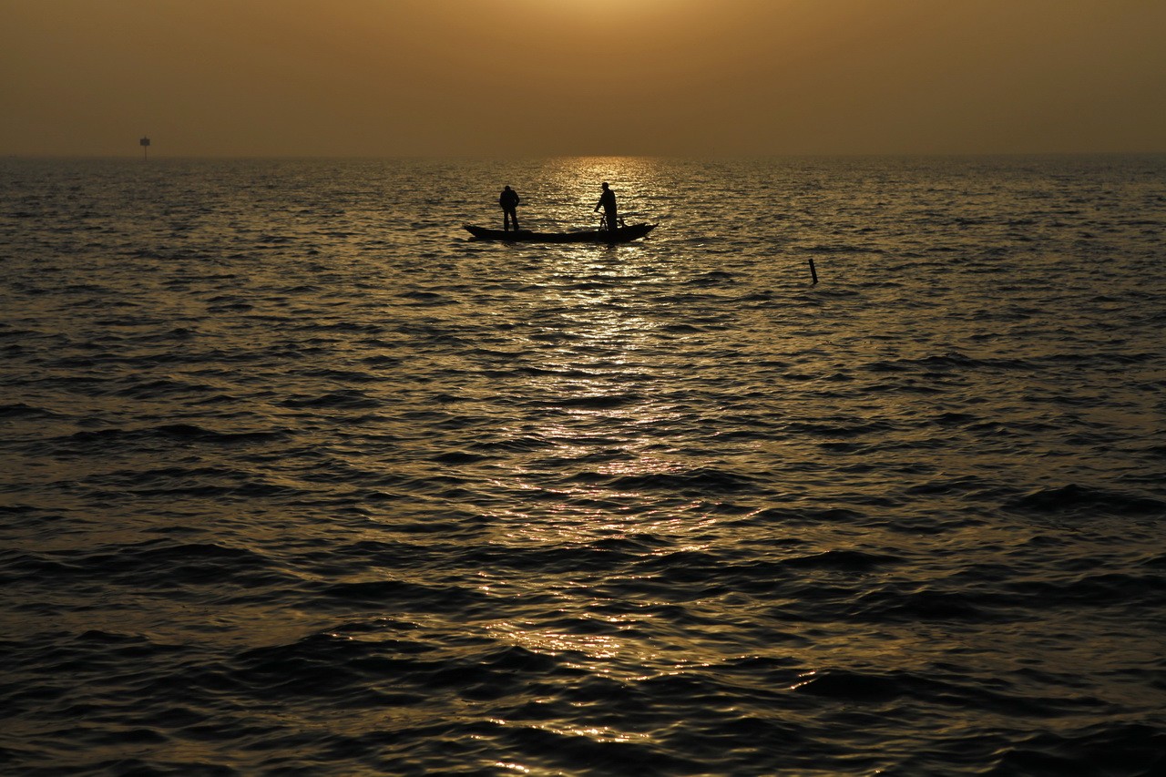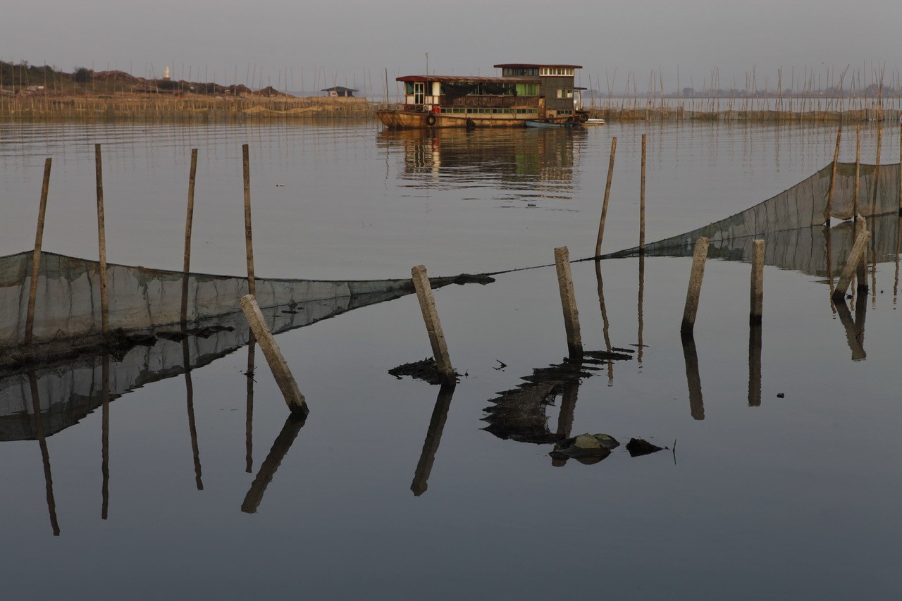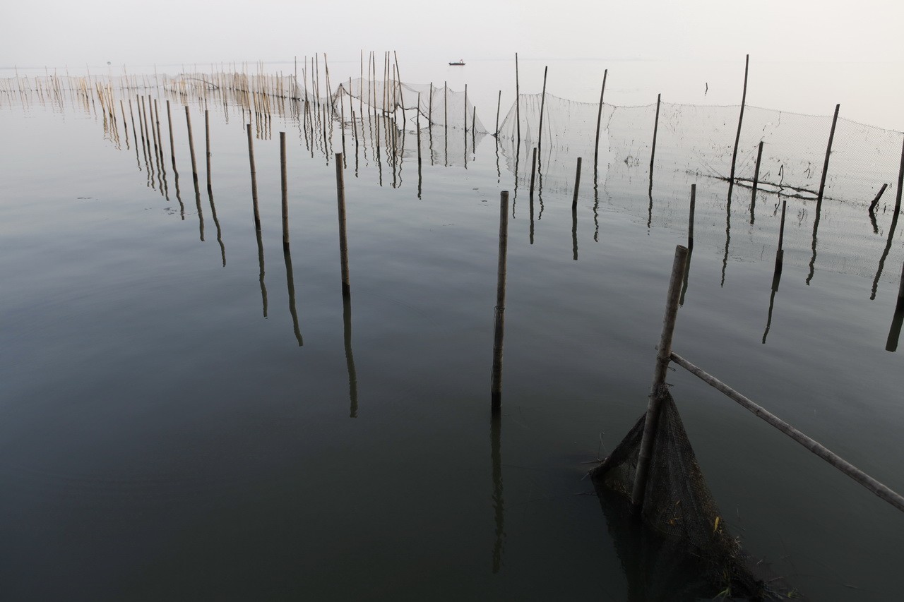 12月9日早晨,迎着朝霞拍摄捕鱼人。