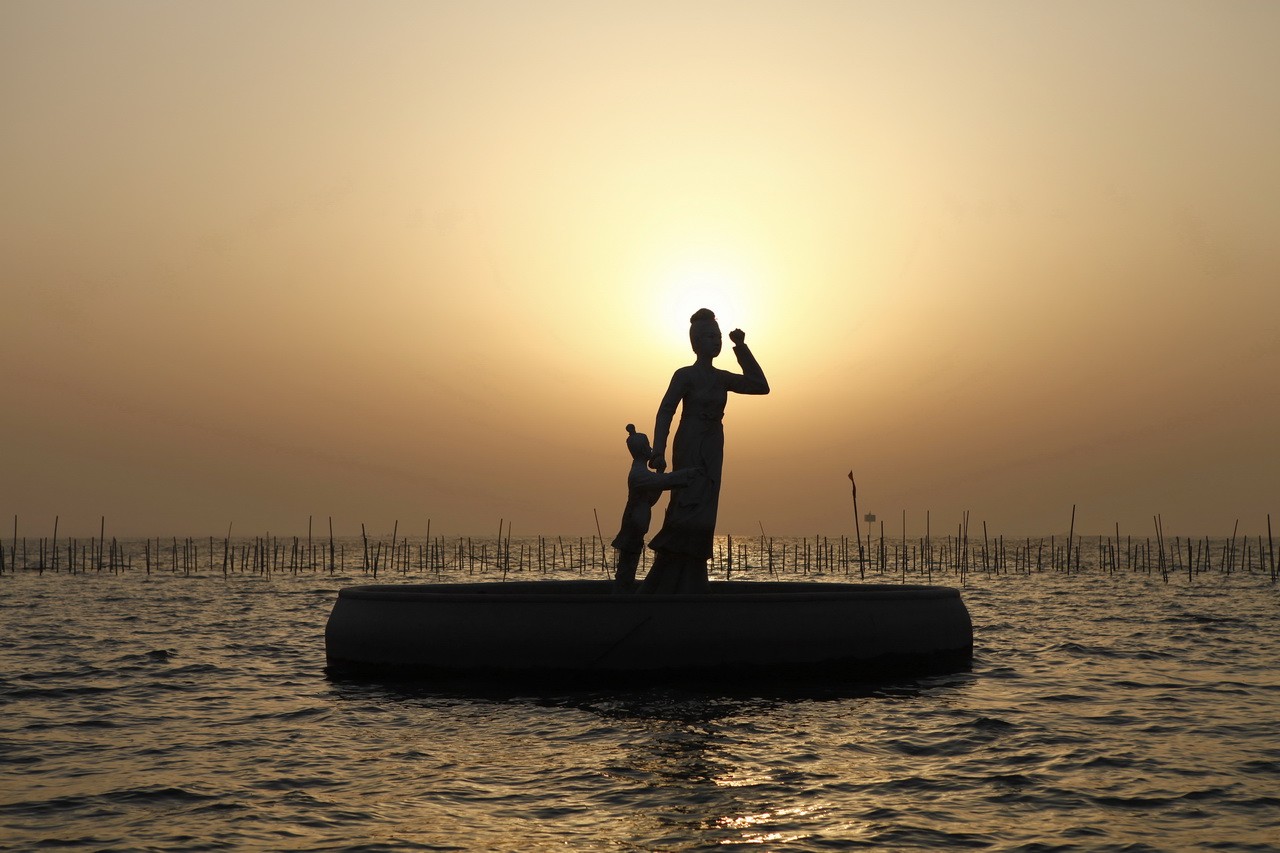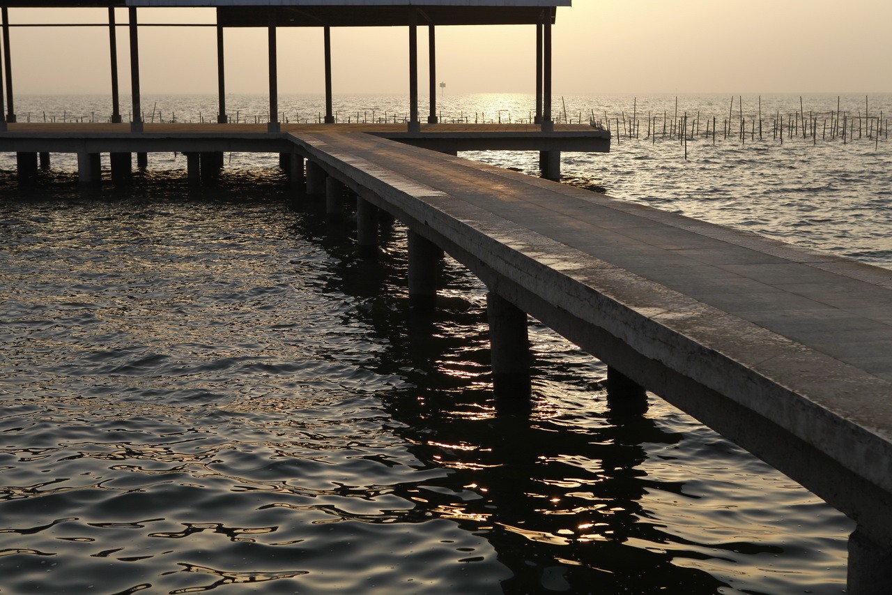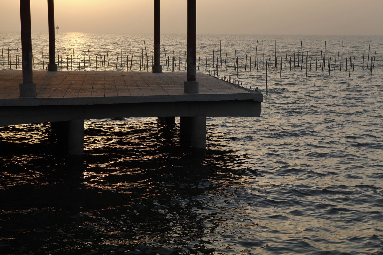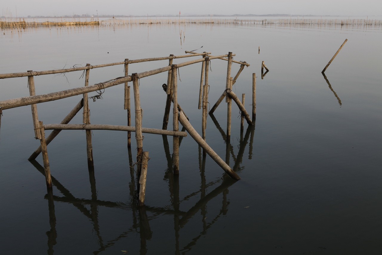 12月9日早晨,迎着朝霞拍摄捕鱼人。