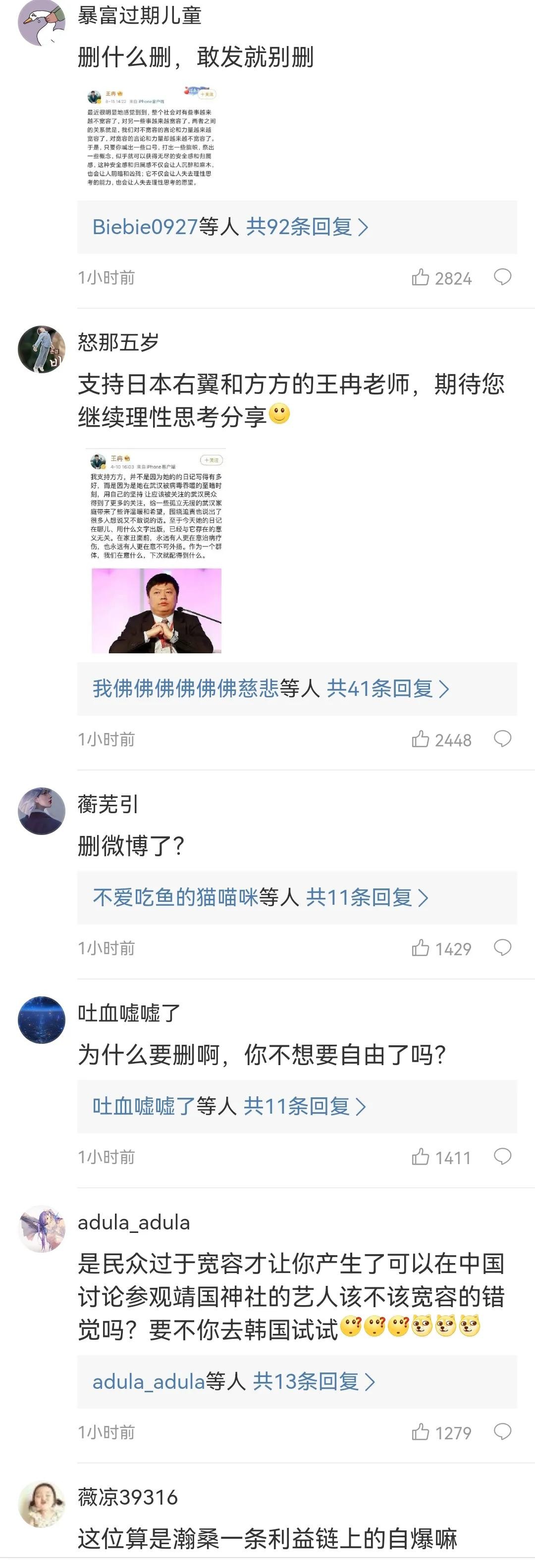 不少网友在王冉的微博下留下质问,更是有人扒出王冉层公开支持过方方,迫于压力,王冉最终删除了微博。
