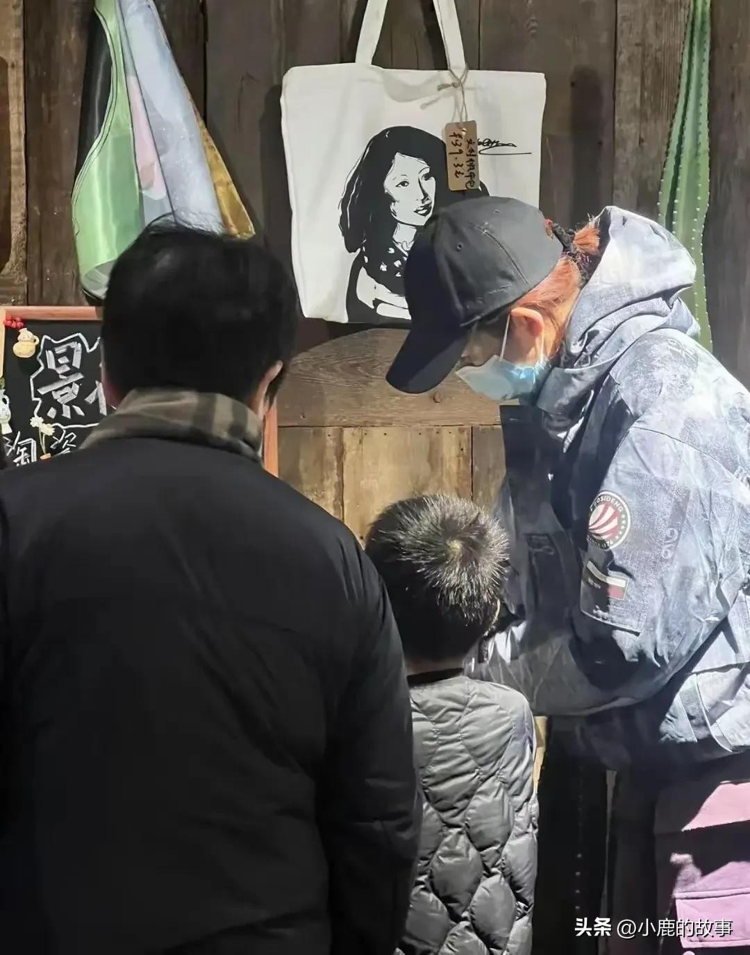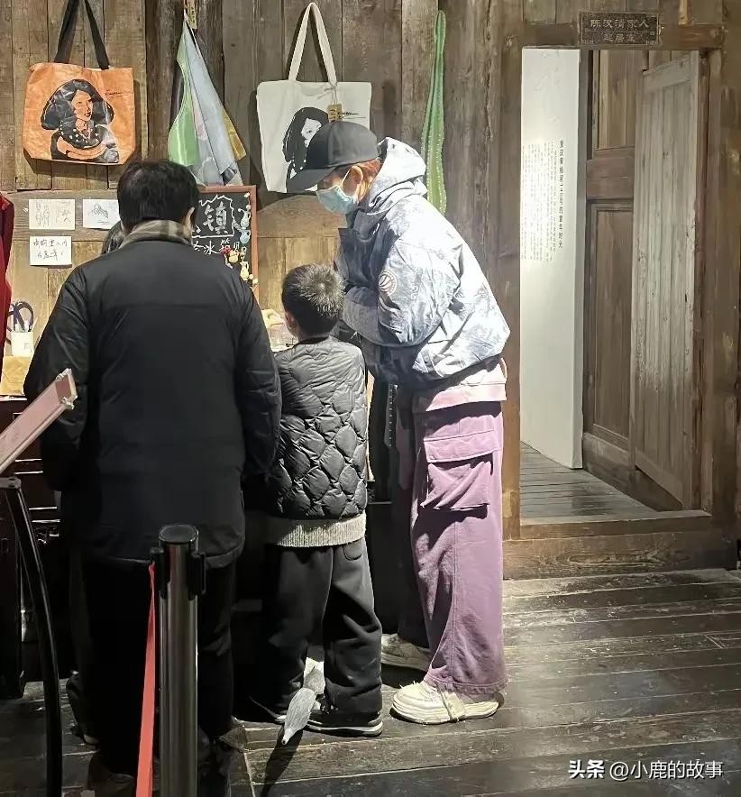 在一个小店里,蔡少芬中间站着5岁小儿子张乐儿,他们在看着景德镇陶瓷工艺品,挂坠陶瓷葫芦小巧玲珑。乐儿穿着黑色羽绒服,个子都长得很高了,活泼可爱。妈妈黄素梅带着格子围巾站一边。但是蔡少芬好像对妈妈无话可说,很冷淡。