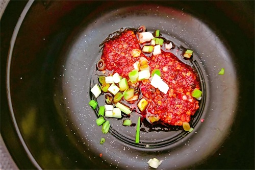 6:)起锅烧水,水开后,往辣椒碗中加入适量的开水。
