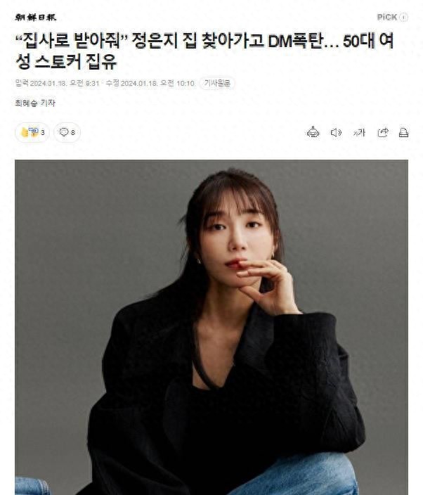 4. 事件结局:赵某被判刑一年,缓期两年执行,罚款10万韩元,并接受保护观察、社会服务120小时、预防再犯跟踪骚扰罪的预防讲座40小时。郑恩地遭受了精神上的痛苦和压力。