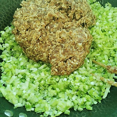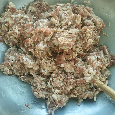 3、将肉馅霍均匀,一个方向搅打上劲,大概拌个十来分钟。