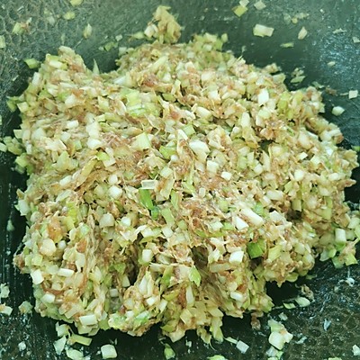 6、搅拌均匀的饺子馅,在饺子馅里放入一些食用油可以防止韭黄出太多水。接下来准备做皮,馅放在阴凉的地方。