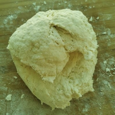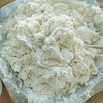 9、案板上撒上面粉,将面放在案板上揉搓。