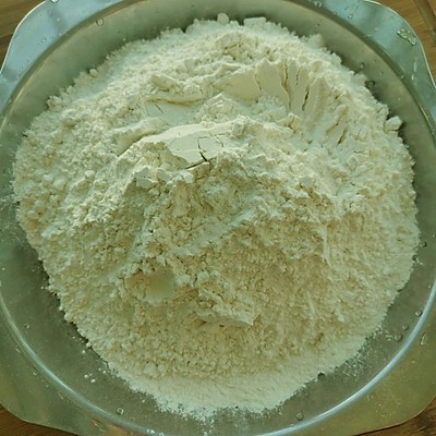 7、我用了差不多650克的面粉,550ml的凉水,慢慢搅拌。