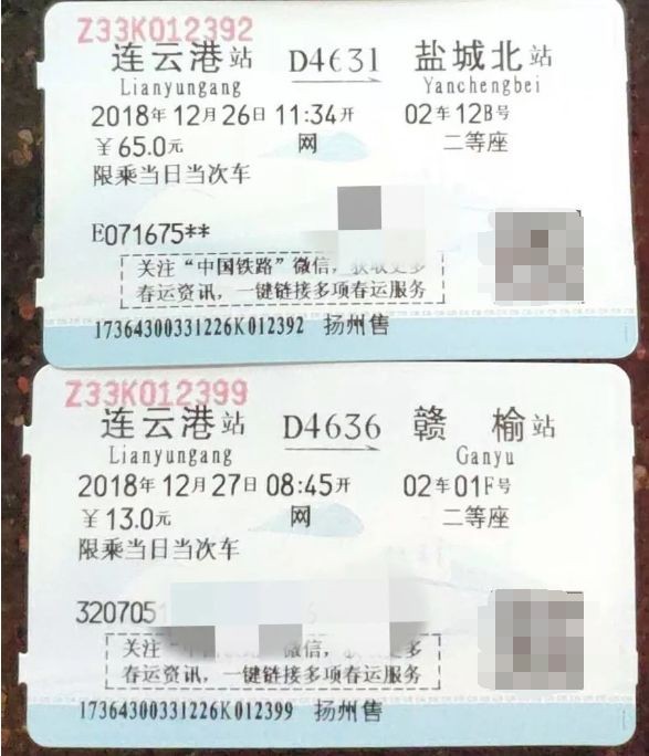 12月26日和1月4日,青岛北至盐城北当天只开行一对动车,在盐城北站暂时只能购买至连云港、日照和青岛北的车票;