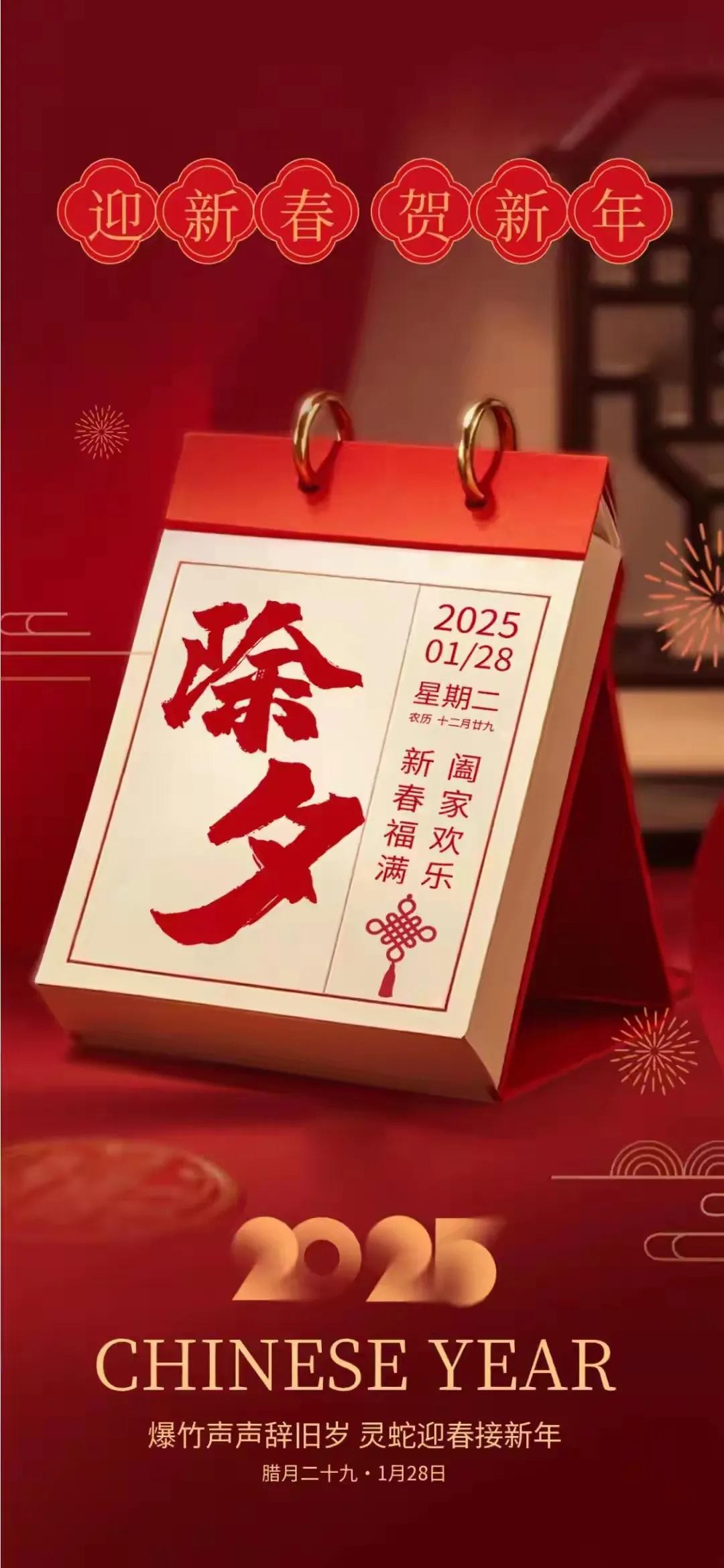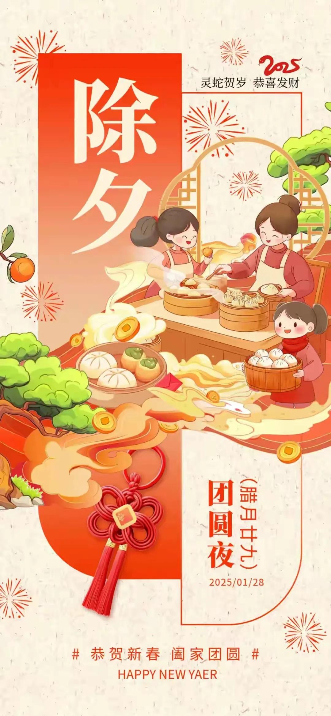 在这辞旧迎新的美好时刻,我们迎来了2025年的除夕夜。家家户户张灯结彩,欢声笑语传遍大街小巷。