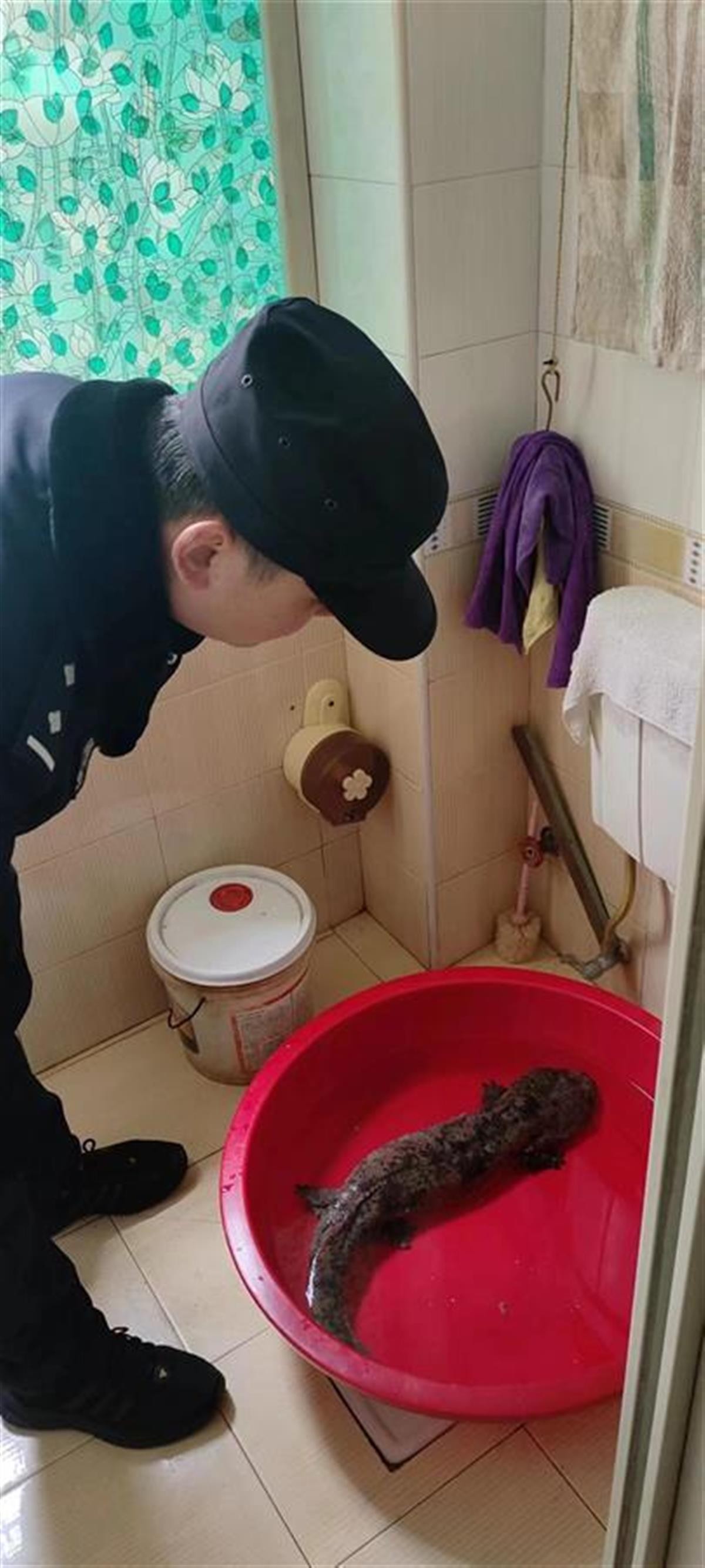 因娃娃鱼对生存环境要求非常苛刻,随后,民警联合农业农村局工作人员将娃娃鱼送至殷祖镇朱铺村一崖洞内放生。