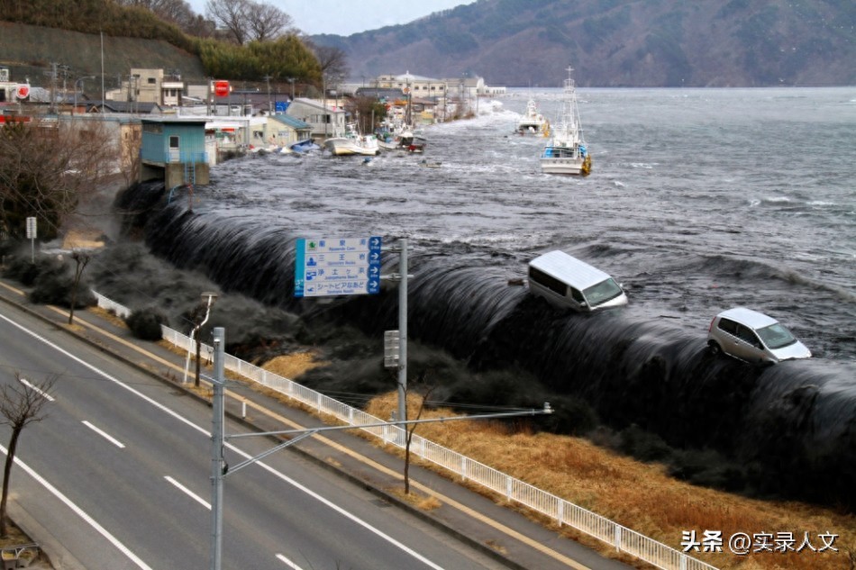 巨大的地震引发了高达8.6米的大海啸。海啸首先冲击海边的机场,带着无数泥沙和碎片冲向机场跑道,卡车在海啸面前瞬间被掀翻。接着,海啸冲向城市中心,村里的大喇叭开始预警,让人们赶紧往高处跑,可他们似乎并不着急。警报声再次响起,预示着海啸正式登陆。海平面以肉眼可见的速度快速上涨,河岸边小型船只被打包冲走,仅仅一分钟后水深就淹没了桥墩。而此时,还有人在骑自行车。三分钟后,海水倒灌漫过隔离墙,车入海里,船上陆地,一片混乱。洪水冲上街道,水位瞬间超过2米,从各种缝隙喷涌而出,很多人没来得及下车就被洪水卷走。大型轮船被冲来冲去,电线杆在各种力量下苦苦支撑,水面上出现越来越多的残骸碎片,整个宫城县城仿佛变成了东海龙宫。大浪第一次退去后,竟有人跑到海滩捡贝壳,却没想到第二波海啸又来了。