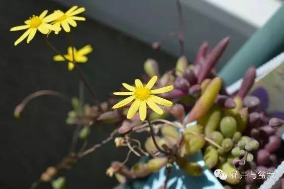 紫玄月也是新手的多肉植物之一,叶片犹如一轮紫色弯月,别有风情,它很容易爆盆,一下子长满一大盆,开满黄色的小花时,就更加让人惊喜啦!