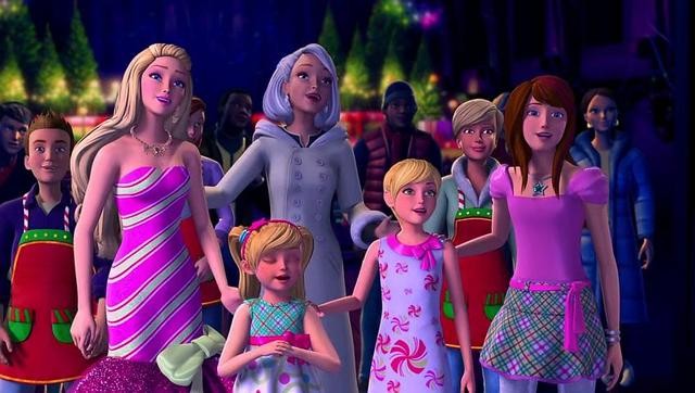 在片中芭比在前往纽约的途中遇到了暴风雪,滞留在偏远的小镇宾馆。但虽然如此,他们依然度过了一个完美的圣诞:原来只要大家能共聚一起,便能感受真正的快乐,也让节日变得更加完美。