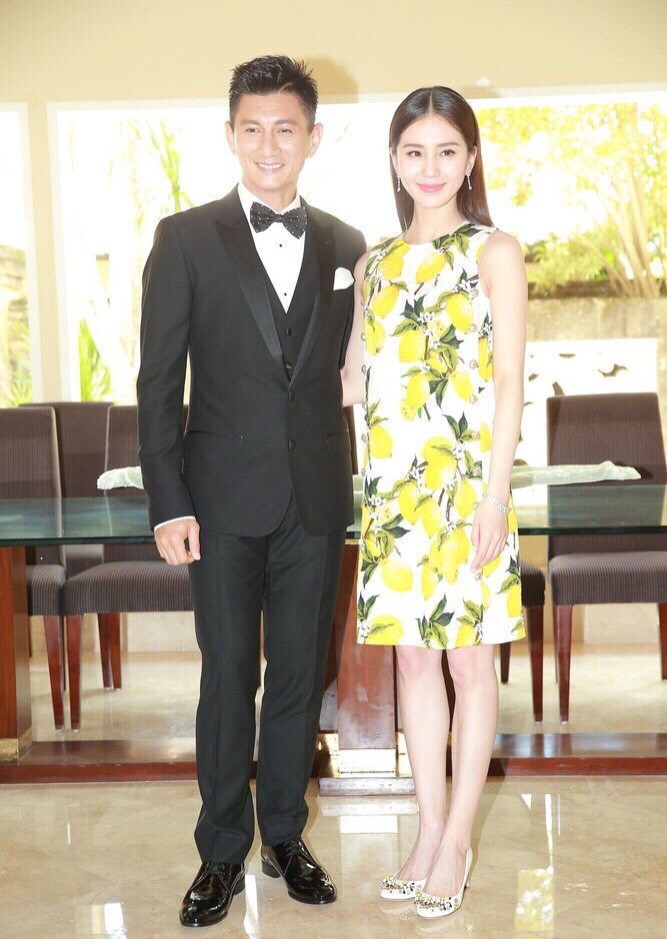 在在婚礼结束后After Party 上,刘诗诗换了套杜班加纳柠檬黄印花裙,很有热带风情,旁边站着的吴奇隆黑色西装英俊潇洒。