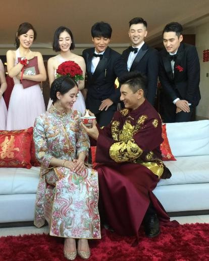 婚礼当天,刘诗诗穿了一件中式嫁衣,手捧一大束红玫瑰雅致迷人,刘诗诗和吴奇隆完成中式迎亲环节。最后一张大合影中,双方父母都在,刘诗诗妈妈看上去真年轻。