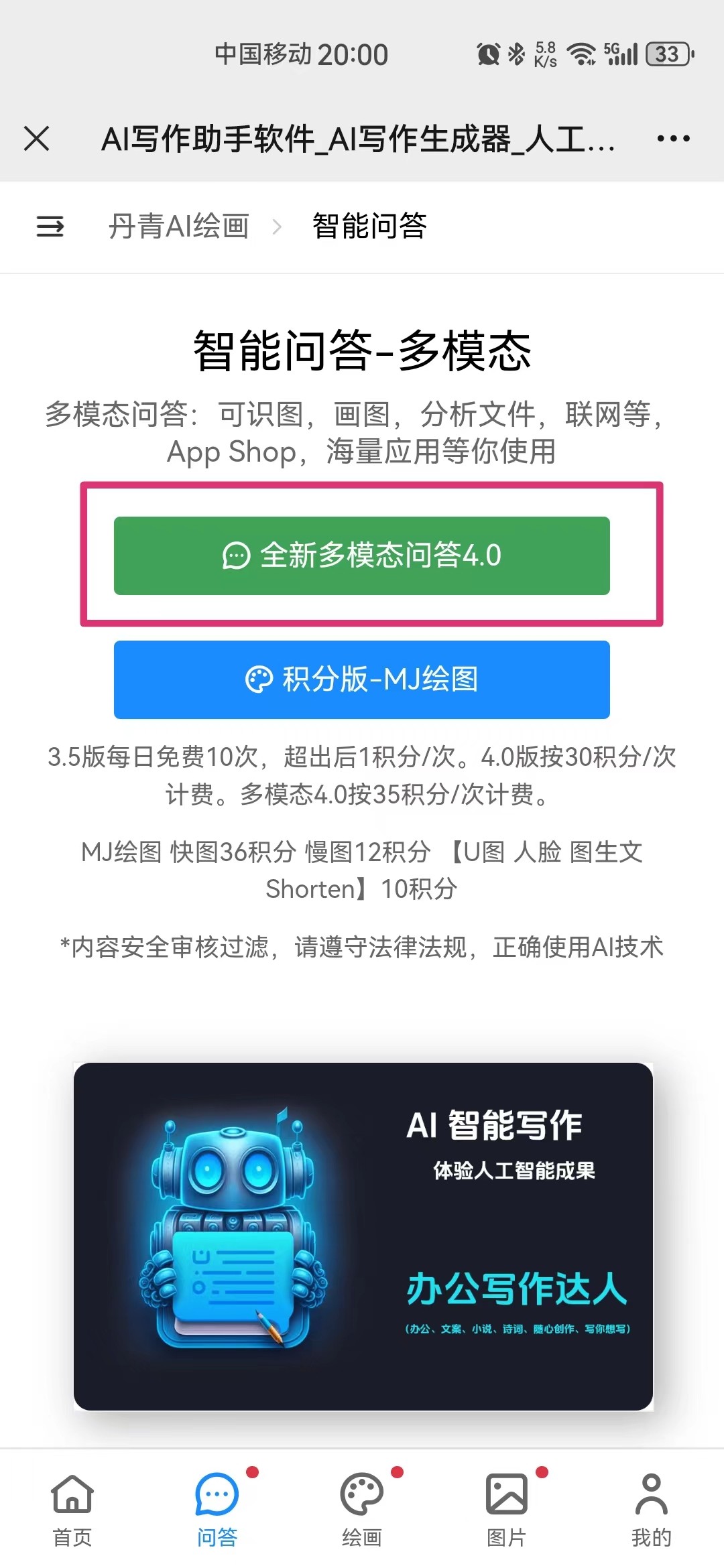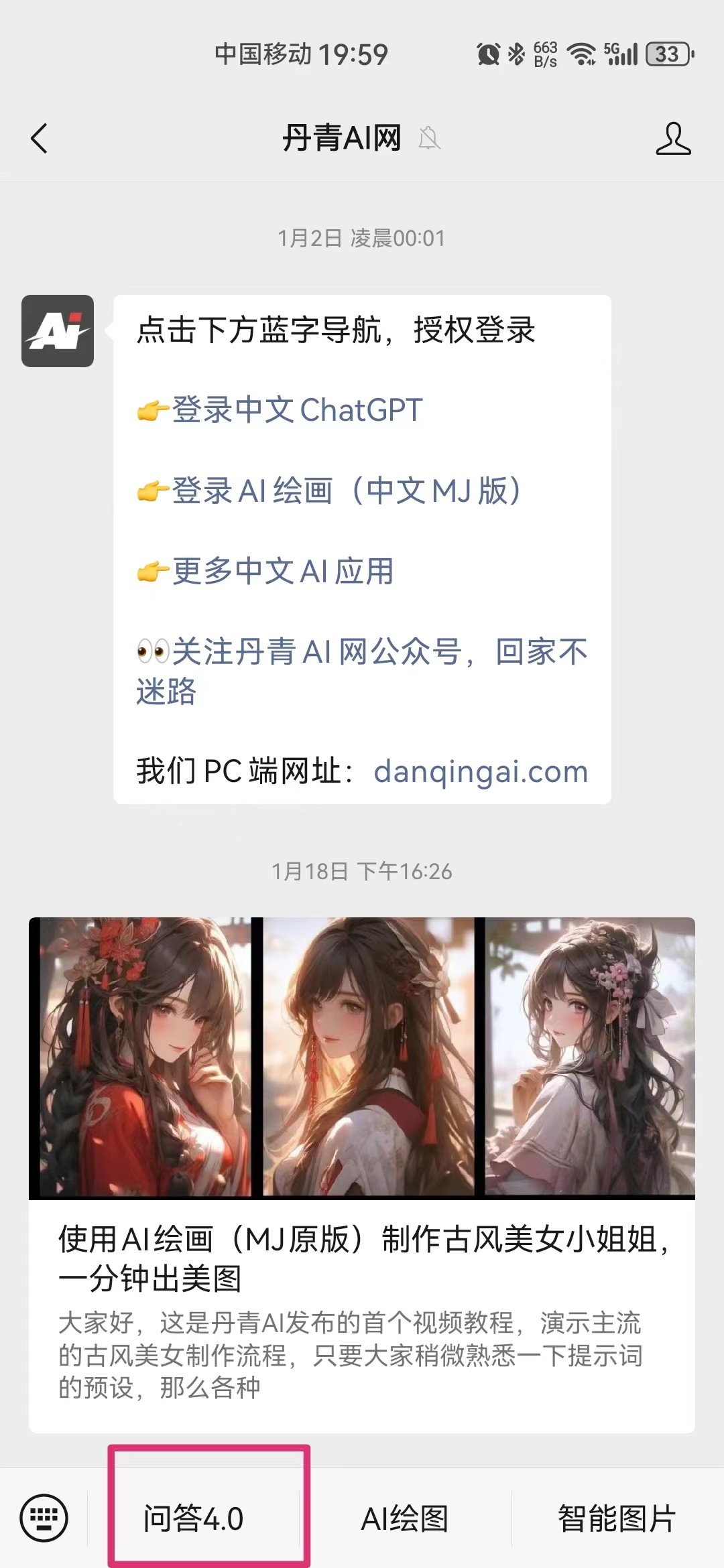第一步:在功能界面上选择左下角的“问答4.0”进入