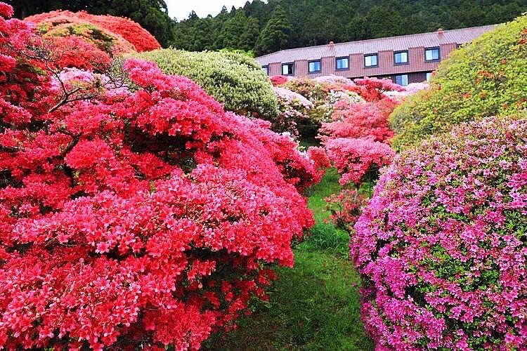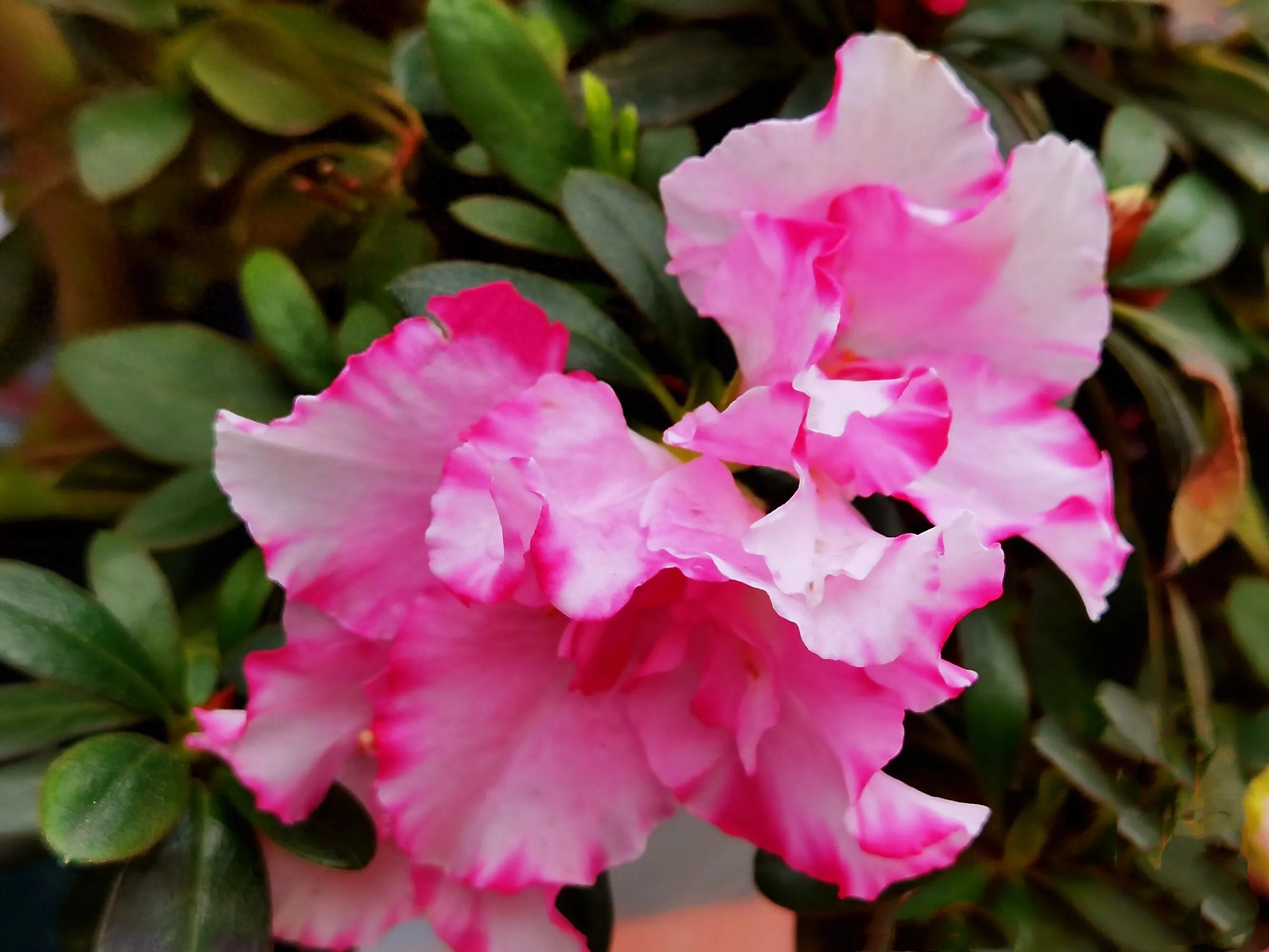 西洋杜鹃花朵硕大,花径可达10厘米左右。大如月季,小似石榴,千姿百态。
