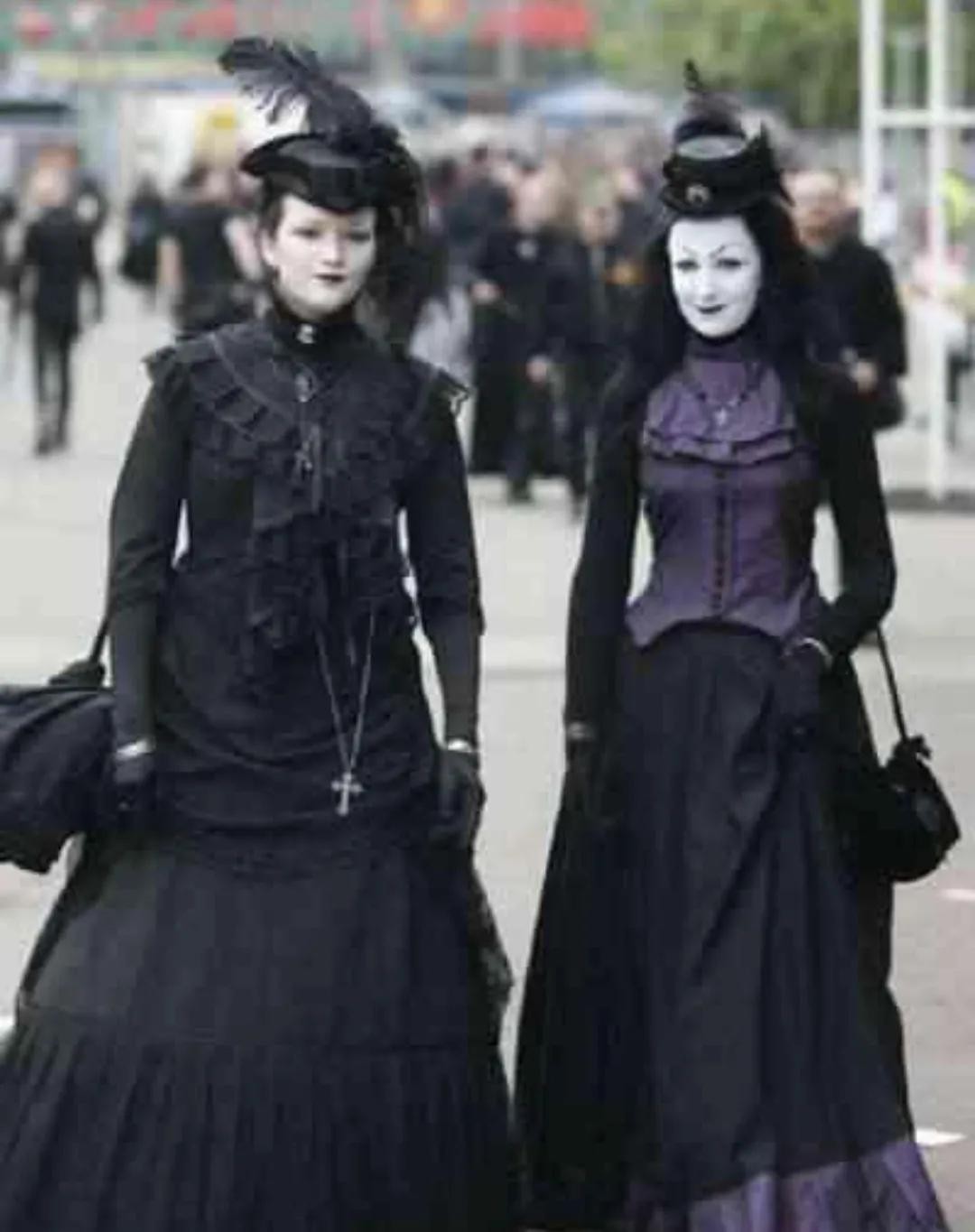 黑色散乱的长发、苍白的皮肤,呈现颓废、死亡气息,黑色紧身衣,黑色网眼袜是其标志,饰品有十字架、骷髅头、飞行镜、五角星等。