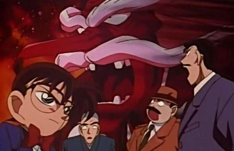 因为天气的原因,柯南、小兰、小五郎要留宿的山寺里。在这里流传着一个关于雾天狗杀人的传说,说是“雾天狗”会把年轻女子带在很高的树上去吊起来,以这些年轻女子的尸体的肉为食。修行僧们想对小五郎讲述2年前,一个年轻修行僧死亡的故事,但是被和尚大声喝止。第二天早上时,和尚被吊在非常高的房梁上吊死了。