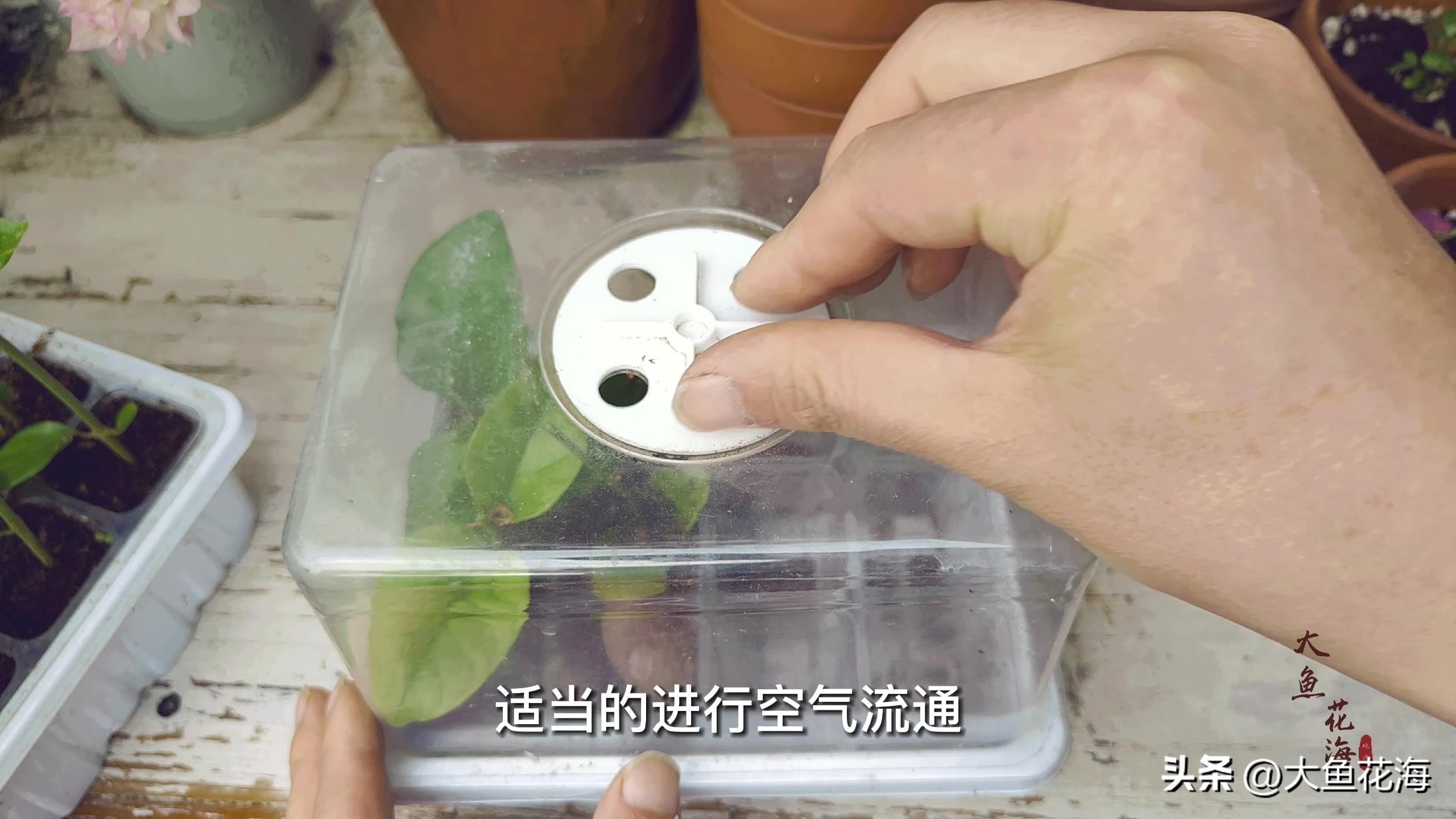 他的上面啊还有四个小孔,没有生根的时候我们可以给他关上,加强湿度的环境,观察到生根的时候,再给他打开,适当的进行空气流通,增强叶片的呼吸作用又能保持一定的湿度,自然扦插的成活率就会变的很高了。