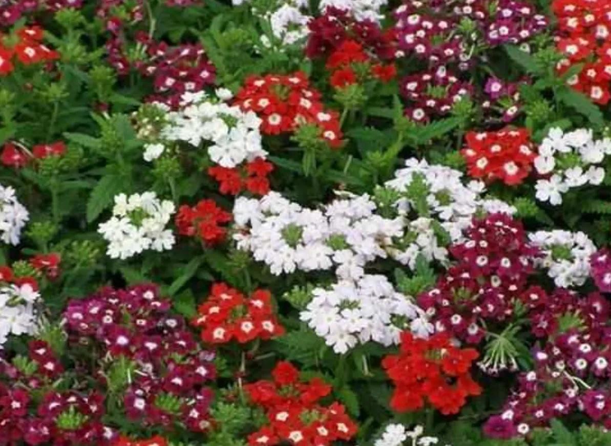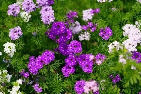 美女樱盛开时像色彩斑斓的花海,十分具有观赏价值