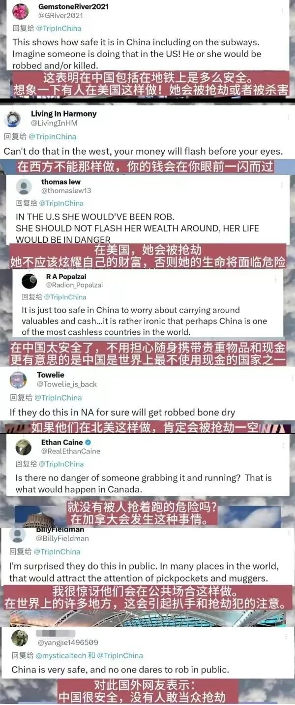 国外网友评论中国太安全,当众数钱不会被抢劫。网友的评论笑死