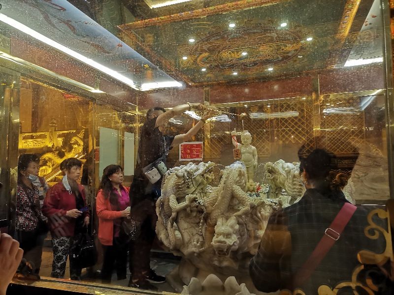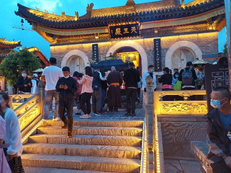 进入寺院,礼拜文殊菩萨,并供灯一盏。发现院中在排队浴佛。