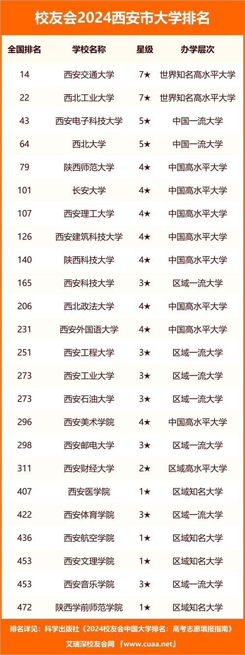 校友会2024西安市大学排名,西安交通大学、西安欧亚学院高居首位
