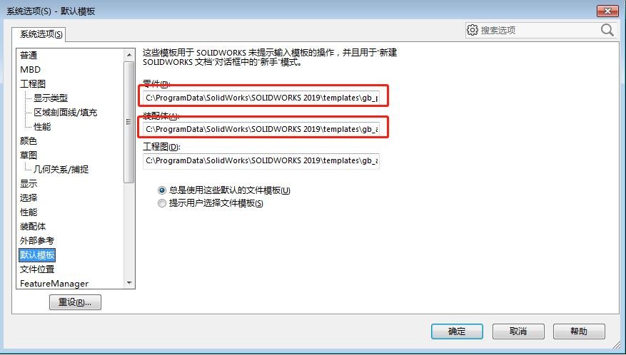 然后分别选择“零件模板”和“转配体模板”框,如图: