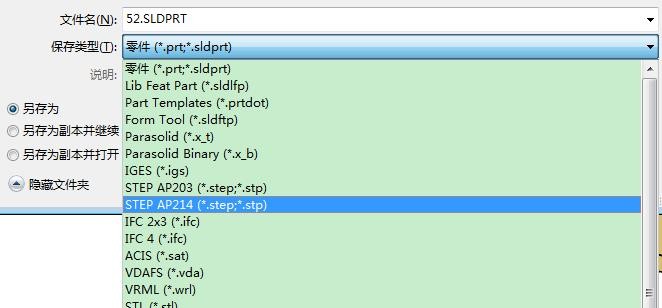 选择 “STEPAP214(*.step;*stp)”,点击“确定”。完成!