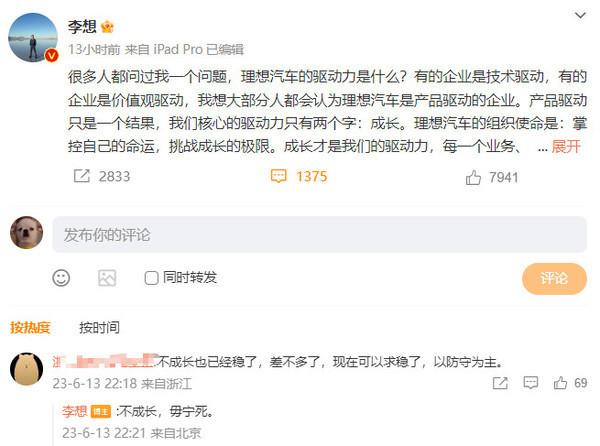 李想表示," 我们作战的目标就一个:把学习到的知识,通过实战训练,获得成长,变为能力。每一次实战,都可以验证我们学习到的知识能否变成能力,另外还可以从同行那里学到很多新的知识,这是站在外面看热闹所无法获得的。"" 这就是从去 2022 年 8 月崩盘的 4000 多辆交付,一路成长到今年 6 月目标超过 30000 辆交付,一路走过来最真实的内心想法和实战成长。"