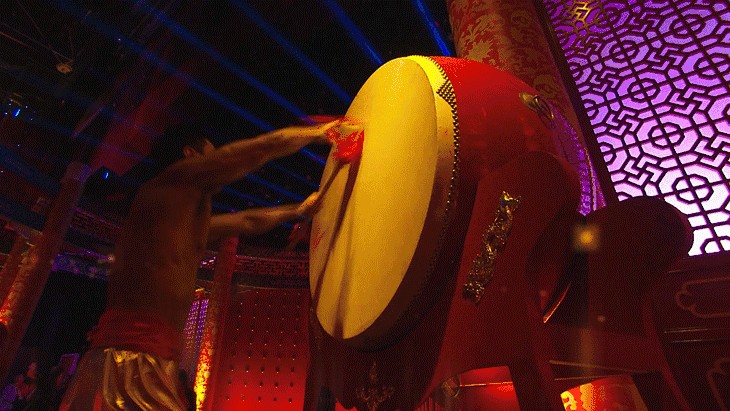 第三季组团儿在舞台的两侧摆放着两个中国大鼓。鼓声震天,给选手们带来愉悦与鼓舞,让他们在舞台上放松心态,演绎震撼人心的喜剧作品。