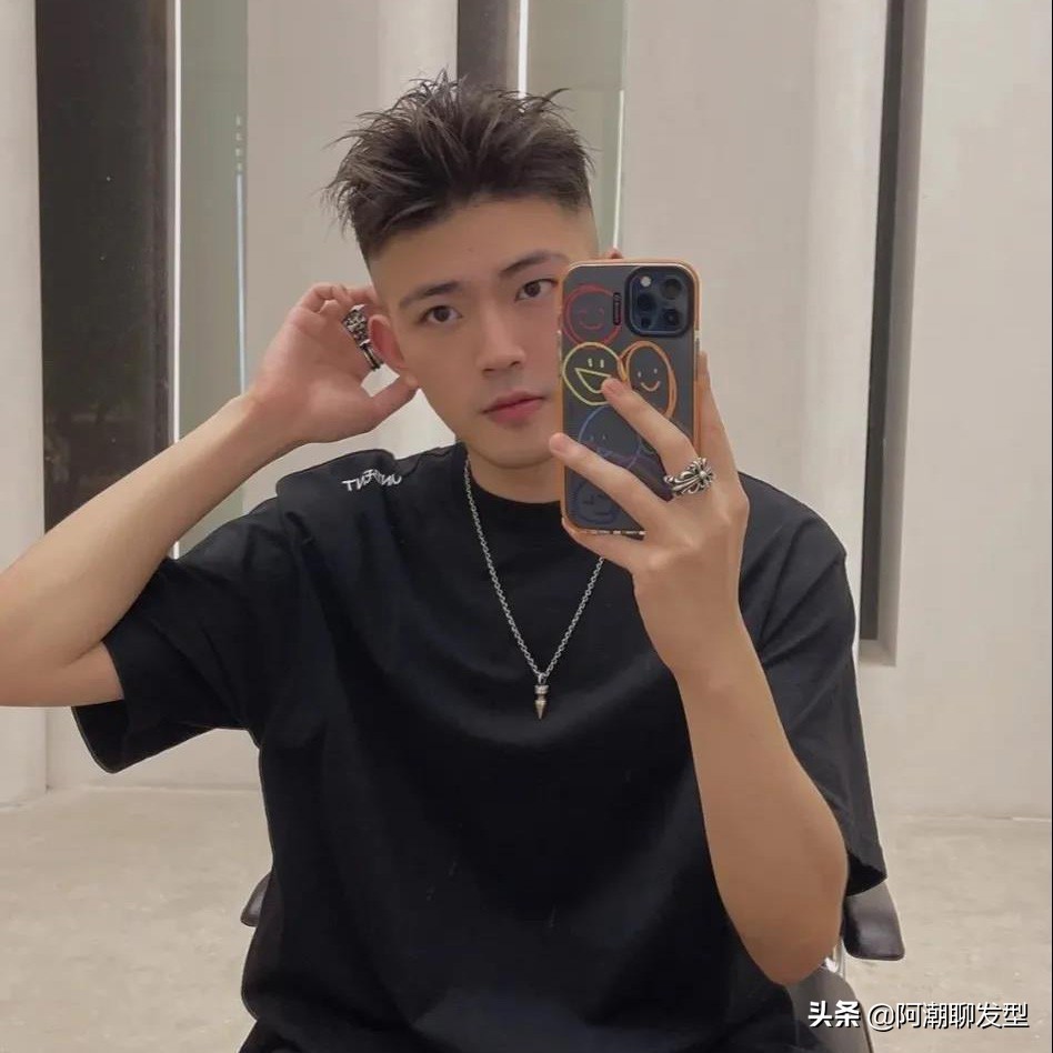 当阿潮第一眼看到这款发型的时候,就突然想起来前一阵子有小哥哥留言,分享一款纹理盖头发型,所以今天阿潮就给安排上,首先这款发型既有碎发的特点,同时又拥有缝松发型的时尚感;两边的头发可以采用渐层铲短的方式,上面的头发及刘海则保留一定的长度,把刘海剪出一定的弧度,剪碎一些,然后还可以把上面的头发烫出一定的