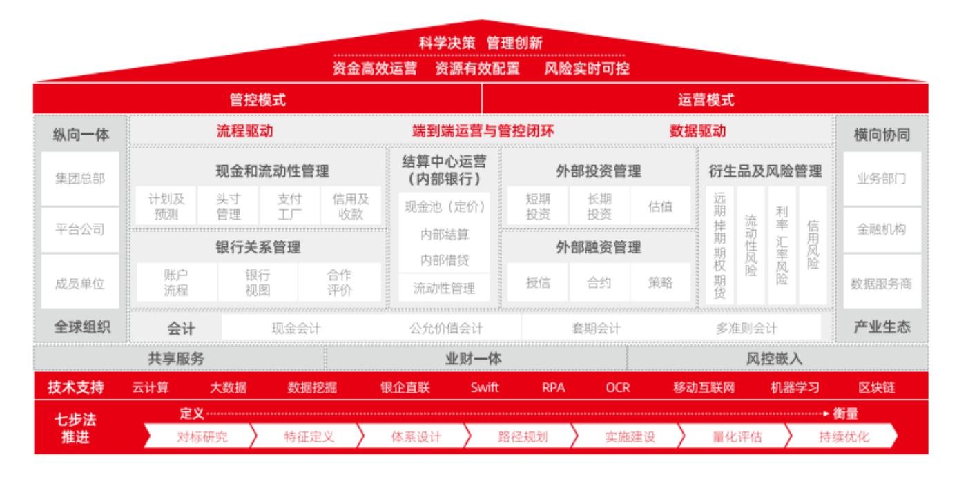 司库体系是企业集团依托财务公司、资金中心等管理平台,运用现代网络信息技术,以资金集中和信息集中为重点,以提高资金运营效率、降低资金成本、防控资金风险为目标,以服务战略、支撑业务、创造价值为导向,对企业资金等金融资源进行实时监控和统筹调度的现代企业治理机制。