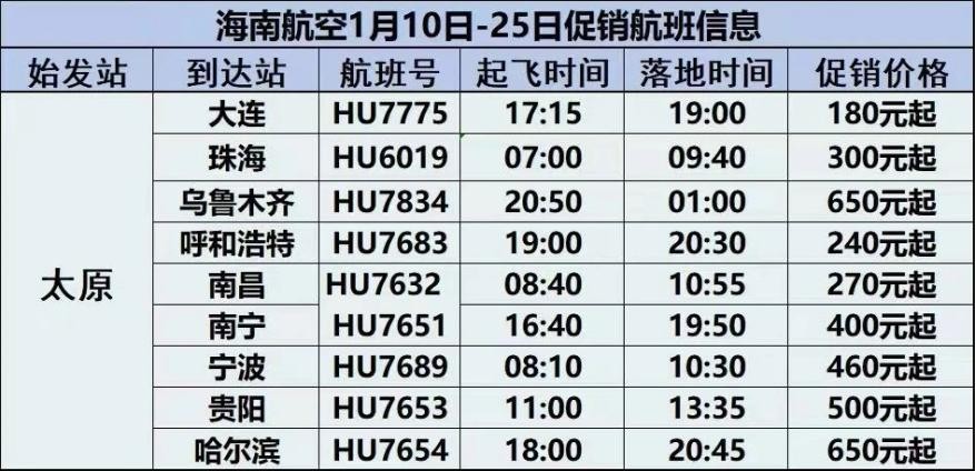 太原机场推出特价机票!!太原—大连180元、太原—杭州230元、太原—兰州270元...