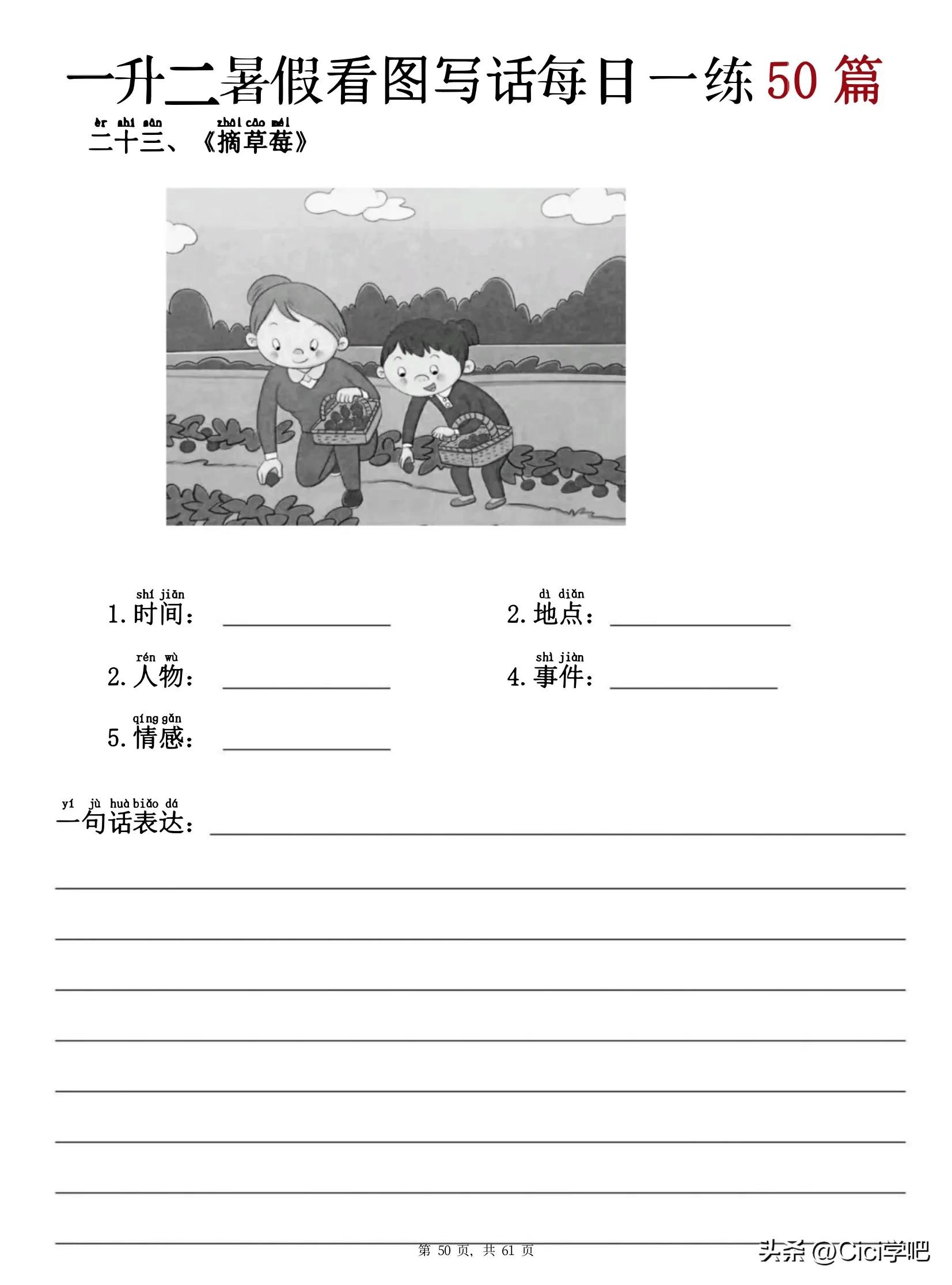 一二年级看图写话提升练习,看图写话背诵专项八