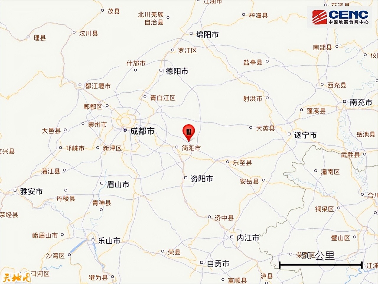 四川成都市简阳市发生3.0级地震