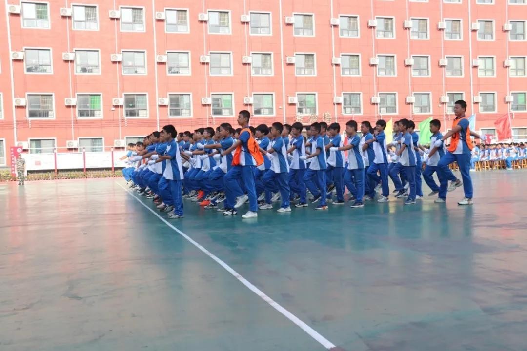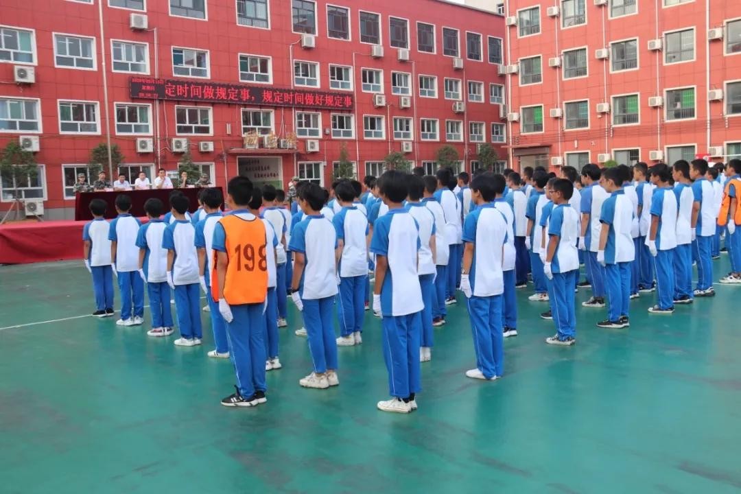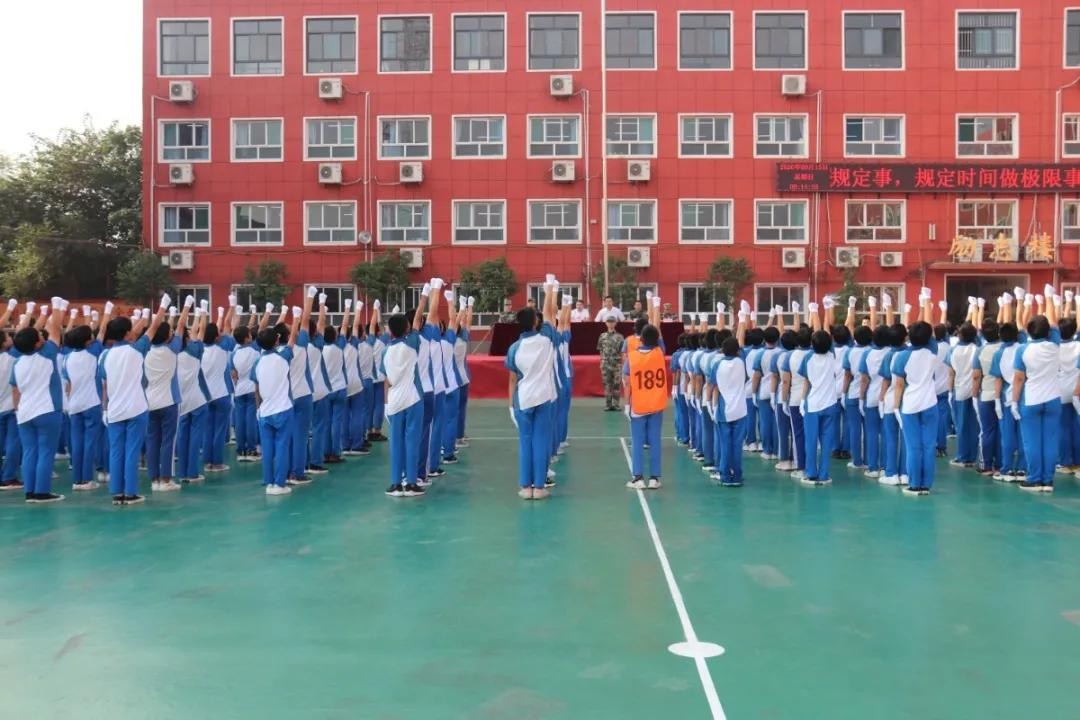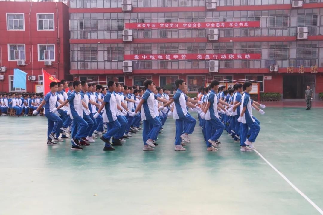 分列式开始!河北磁县朝阳学校新生军训展演“兵味儿”十足